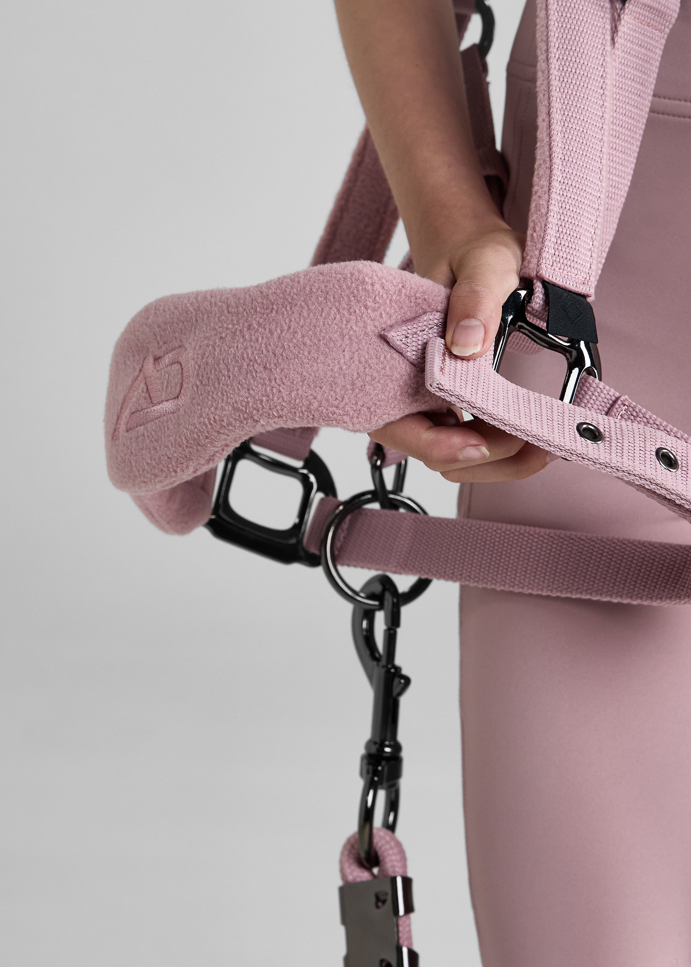 - Fleece panels over poll strap and nose band