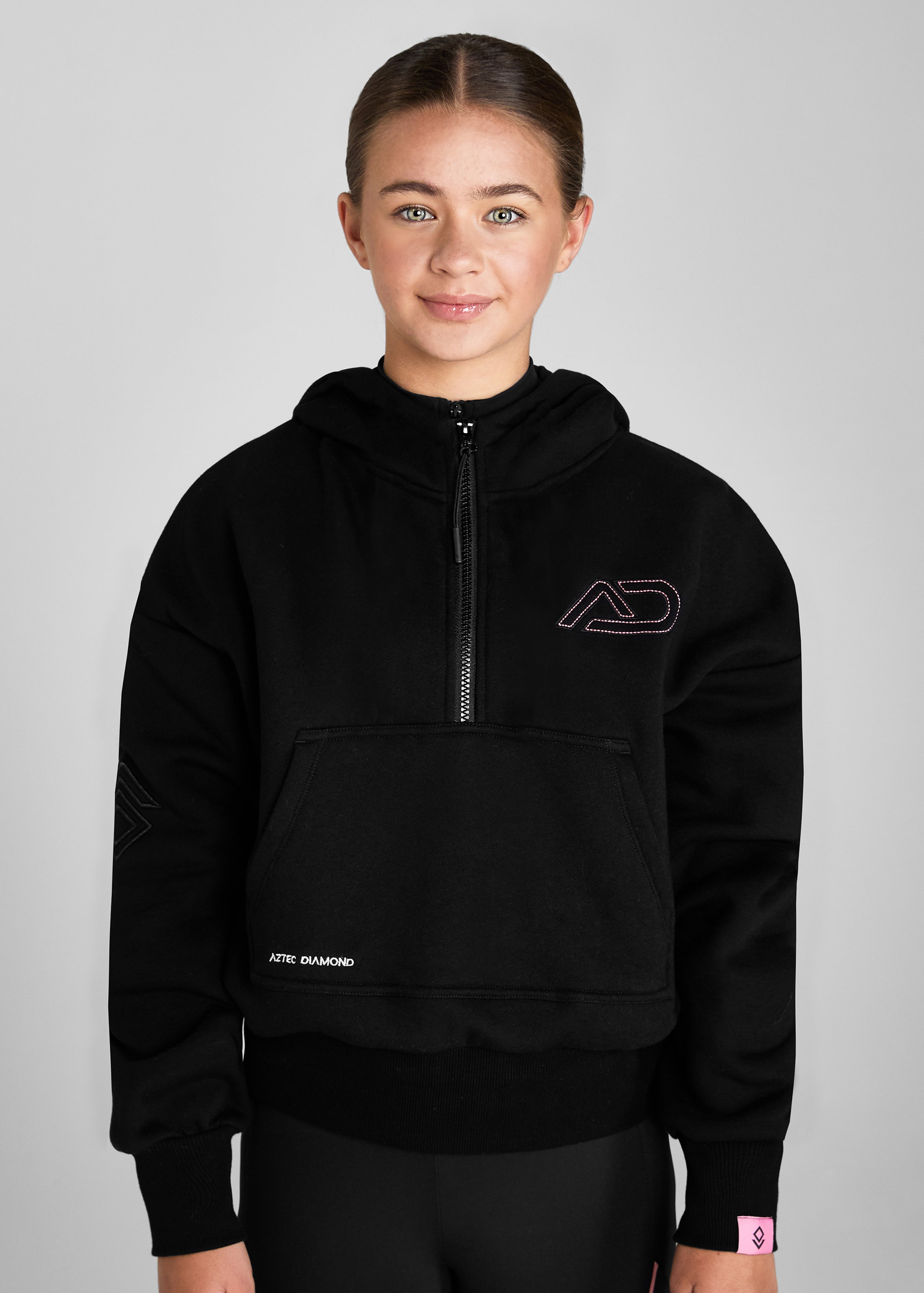 YR Pink Black Half Zip Hoodie