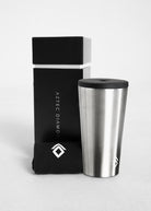 A luxurious black and chrome silver gift box, containing an AD thermal travel mug which keeps drinks temperature stable fir up to 12 hours - both hot and cold, and a pair of our black underboot knee high socks. The perfect winter gift set!